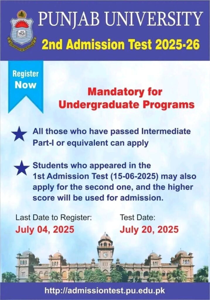 Here is an excellent opportunity for fresh intermediate students as Punjab University admissions 2025 has been opened all over the country. Punjab University Admissions 2025.